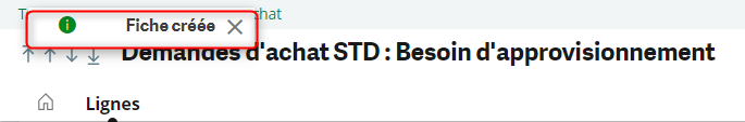 Un pop-up apparaitra en haut à gauche de l’écran pour vous confirmer la création de votre demande d’achat.