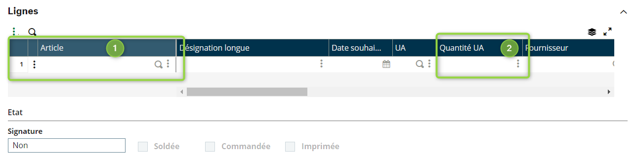 Il suffit alors de tabuler autant de fois que nécessaire afin d’arriver dans la colonne “Quantité UA” (cf image ci-dessous)