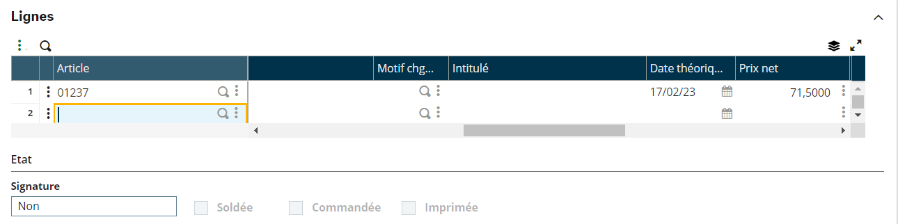 Si nous souhaitons créer une nouvelle ligne afin de rajouter un article, il suffit de tabuler