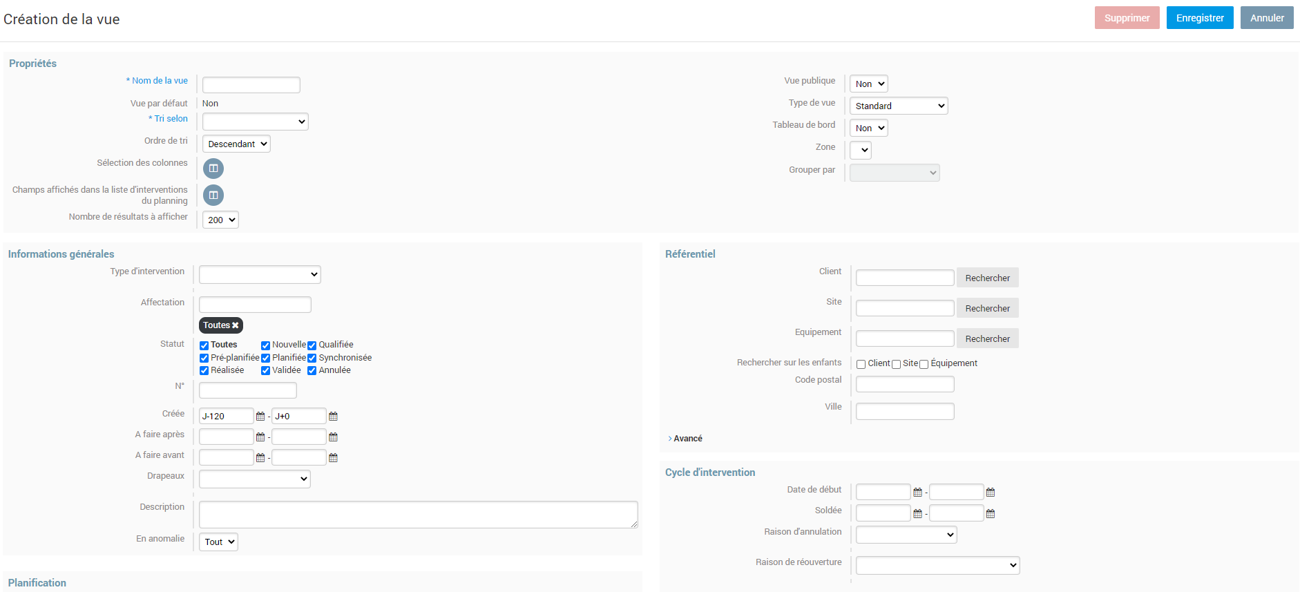 Pour créer une vue pour les interventions, cliquez sur
