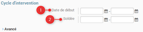 1. Date de début : Permet de chercher les interventions en fonction de l’heure à laquelle elles ont été démarrées sur le terrain.