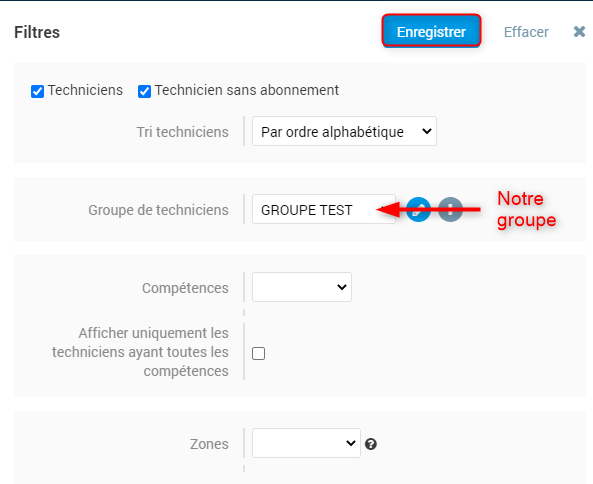 6. Une fois vos techniciens sélectionnés, il suffit de cliquez sur et de nommer votre groupe
