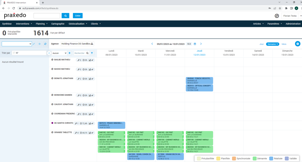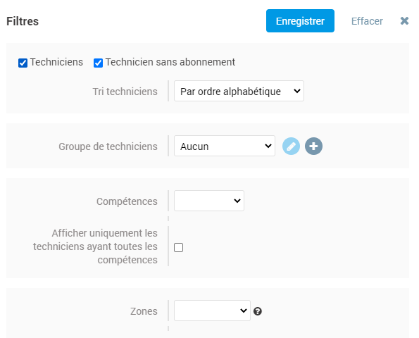 Vous voyez le listing de tous les techniciens de l’agence en question. Cependant, votre équipe n’est peut-être pas constituée de tous les techniciens. Nous allons créer la vue planning par défaut de nos techniciens.