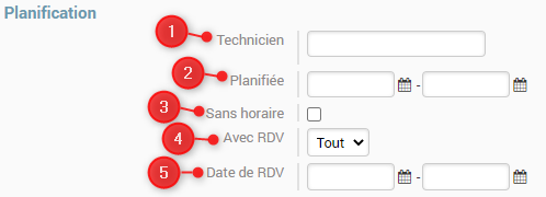 1. Technicien : Permet de sélectionner le technicien