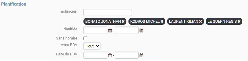 4. Planification qui permet principalement de sélectionner nos techniciens