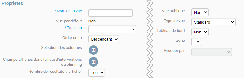 Les champs marqués d’un * sont obligatoires. Ici ces champs sont le nom de la vue ainsi que l’affichage du tri.