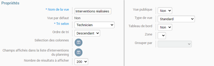 La création d’une vue personnalisée pour les interventions permet de filtrer ce que l’on souhaite analyser. Cela peut aller d’un type de formulaire, de techniciens, des types clients…