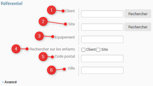 3. Référentiel qui permet de faire une recherche précise sur un client, site, ville ou code postal.