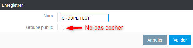 7. Ne pas cocher groupe public, car cela l’affichera à l’ensemble des collaborateurs. Validez afin de créer votre groupe.