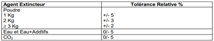 - Charger l’extincteur avec la quantité correcte de l’AVD juste avant le réassemblage en respectant les tolérances de remplissage (cf. tableau)