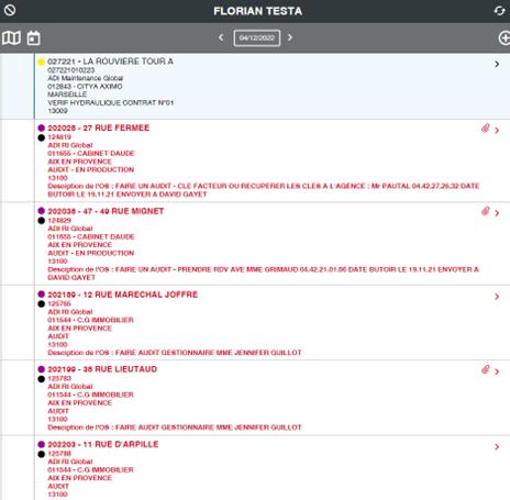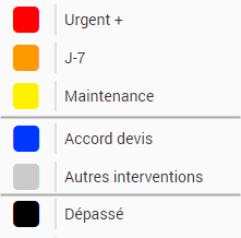 Lorsqu’une intervention est dépassée, le texte se met automatiquement en rouge pour signaler un retard. De plus des drapeaux de couleurs ont été mis en place afin d’identifier rapidement et d’un simple coup d’œil le statut de l’intervention :