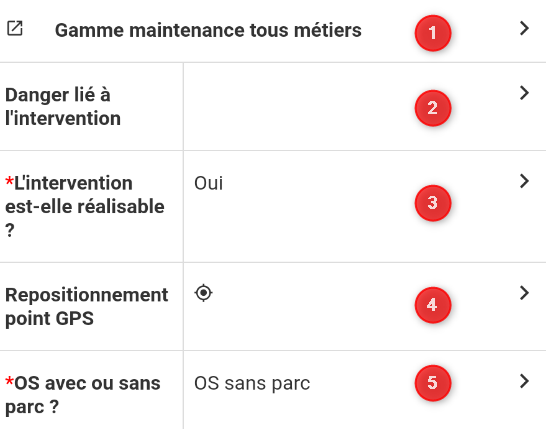 5. OS avec ou sans parc : Prérempli lors de l’envoi de l’OS. Il n’a pas vocation a être modifié par le technicien. Si le parc est présent dans IMMOSERV, il redescendra automatiquement sinon il n’y aura pas de parc.