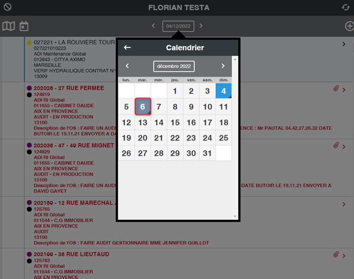 Par exemple : nous déplaçons l’intervention initialement positionnée au 04/12 au 07/12, lorsque nous validons la planification, nous retournons sur notre journée du 04/12.