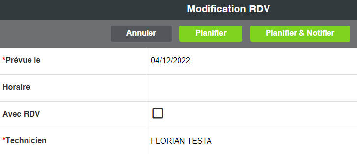 Pour planifier son intervention à un jour précis, il suffit d’appuyer sur « Prévue » pour faire apparaître la fenêtre de planification