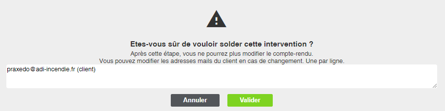 Le second encart en vert correspond aux informations de l’intervention à réaliser. On retrouve différentes informations telles que :