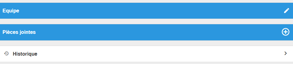 Si vous êtes plusieurs releveurs planifiés sur une intervention, vous retrouverez l’information dans l’encart « Equipe ». L’encart « Pièces jointes », récupère les différentes pièces jointes liées à l’intervention qui sont présentes dans IMMOSERV. Enfin, l’encart « Historique » récapitule l’historique de toutes les interventions réalisées sur le site.
