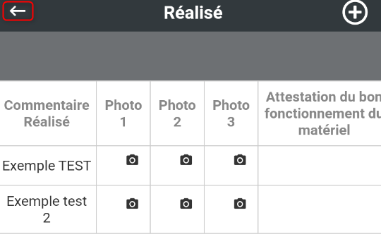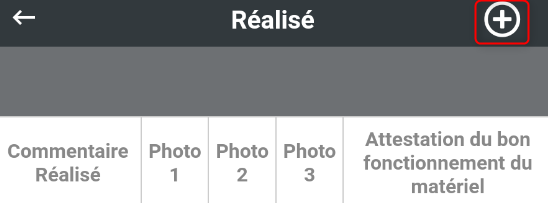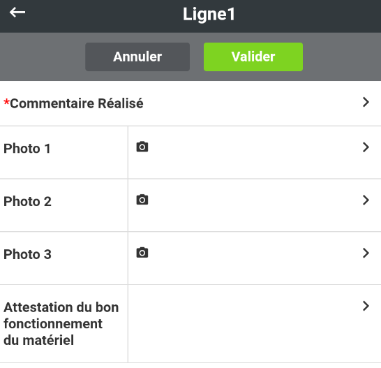 • « Photo 1 / 2 / 3 » : est un champ photo facultatif que vous pouvez renseigner. Il sert à prendre une photo afin de mettre en avant le travail réalisé. Il est possible de prendre 3 photos par matériel.