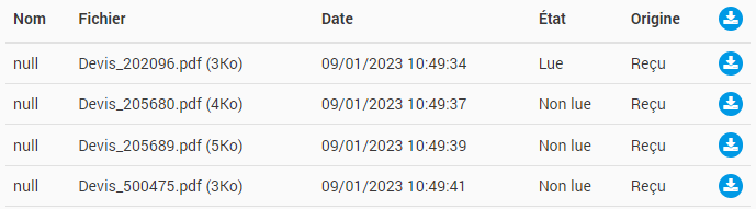Pièces jointes contient toutes les PJ envoyés au technicien pour l’intervention concerné afin qu’il en est connaissance. Sur cette interface nous pouvons les télécharger afin de les visualiser si nous le souhaitons en cliquant sur ![]()