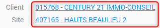 Nous pouvons aussi aller directement sur la fiche client ou site en cliquant sur les liens