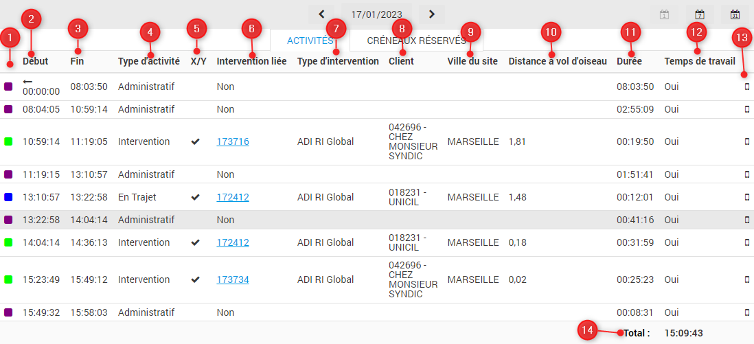 L’activité d’un technicien se décompose en 14 points que nous allons détailler pour faciliter la compréhension.