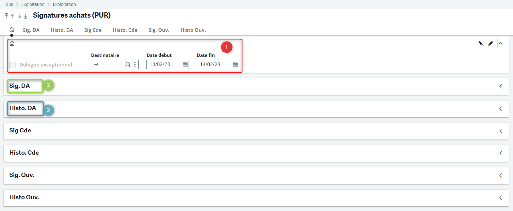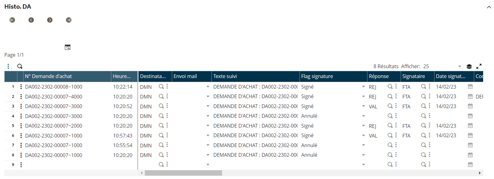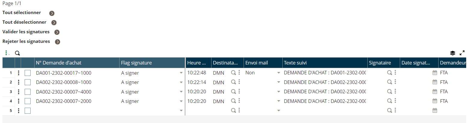 L’affichage vient alors se mettre à jour et nous montre uniquement les demandes d’achat qu’il nous reste à signer ou rejeter.